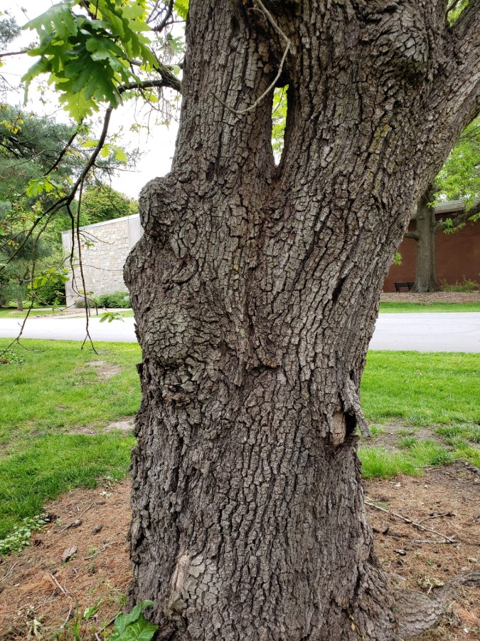 This oak is included with English Oak (Quercus robur), providing the lower tannin wood that produces French oak wine barrels. Looking at the champion specimen, one would question the use of this oak growing in its short branching habit for the wine industry. Being in the white oak group, this taxon has rounded leaf lobes with a leathery glossy texture seen in oak from warmer regimes. Hungarian oak has a wide range from Italy to the Caucasus in Turkey. If our specimen could grow straight and tall, it could reach 125-feet in height. Our specimen measured at a circumference of 93-inches, 34-feet in height, 38-feet in crown spread and rated at 136-points. The champion tree is located opposite the Garden Mausoleum near the west entrance to the gazebo in the Garden Courtyard. A companion specimen of similar habit is located at the northwest corner of Section 60 along the yellow painted line road.